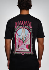 Le visuel au dos met en scène le Maqam Echahid, revisité dans un univers graphique unique entre tradition et modernité, tandis que l’avant reste minimaliste avec le logo Maqam inscrit sur la poitrine.